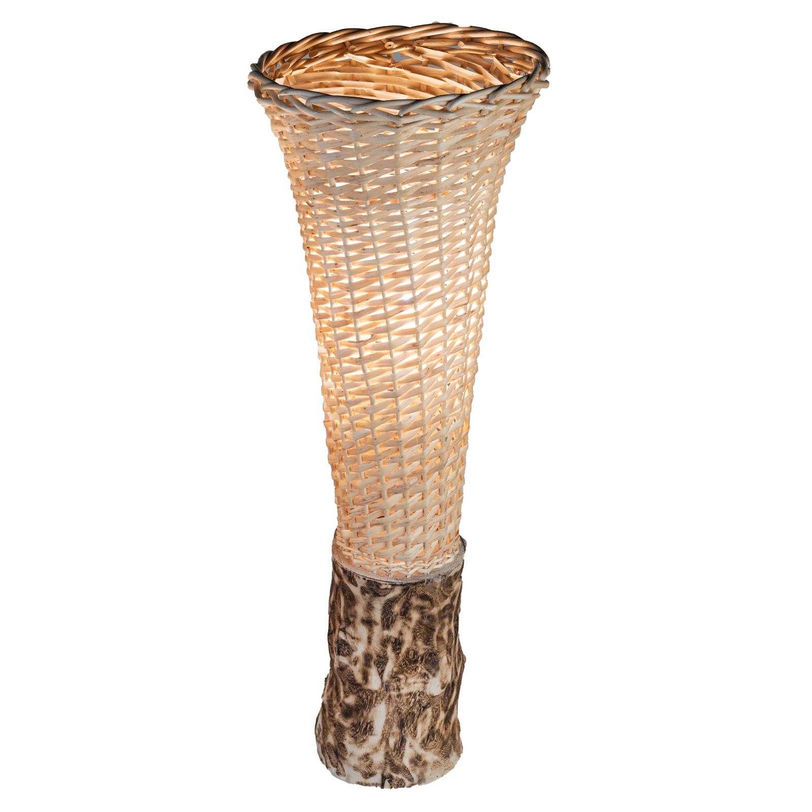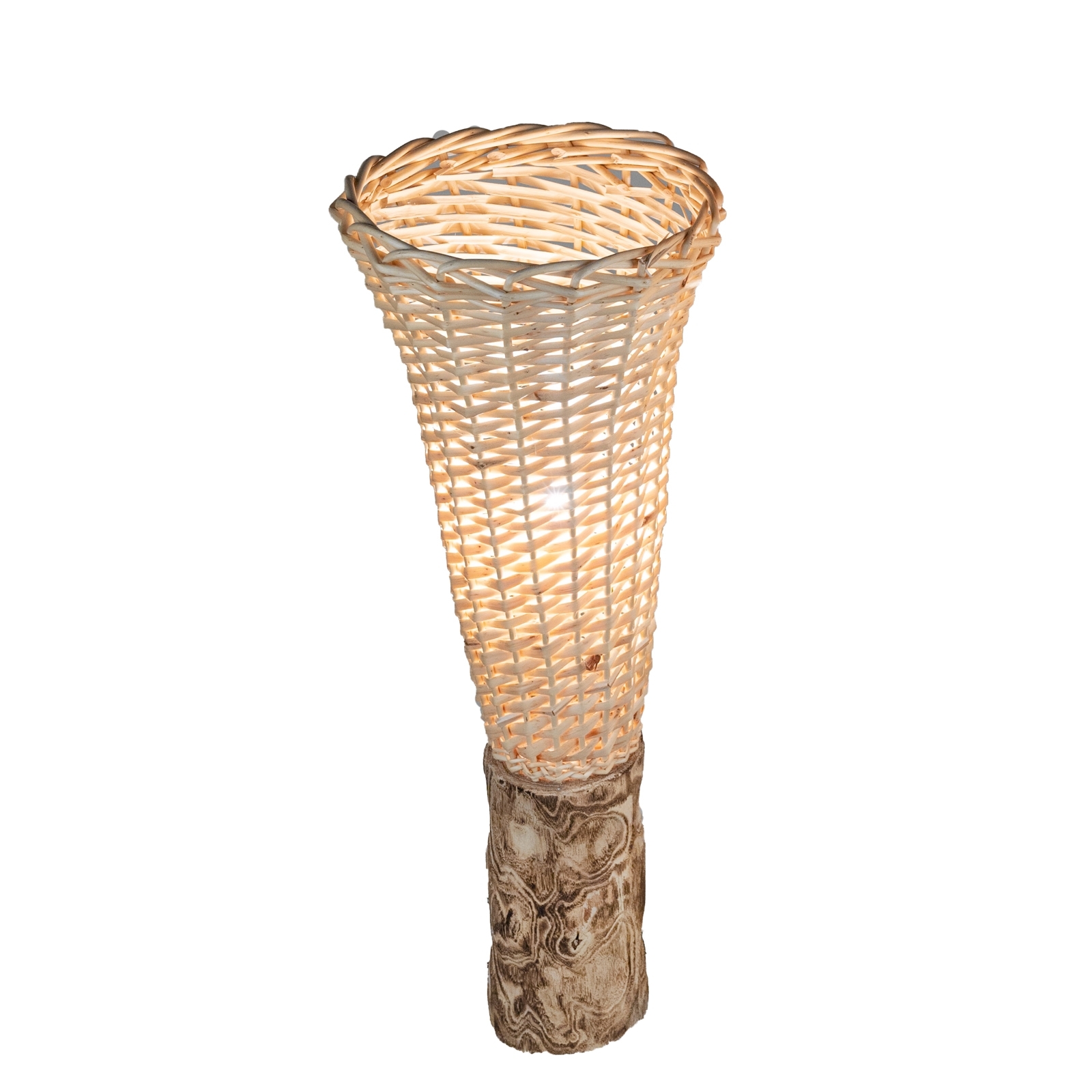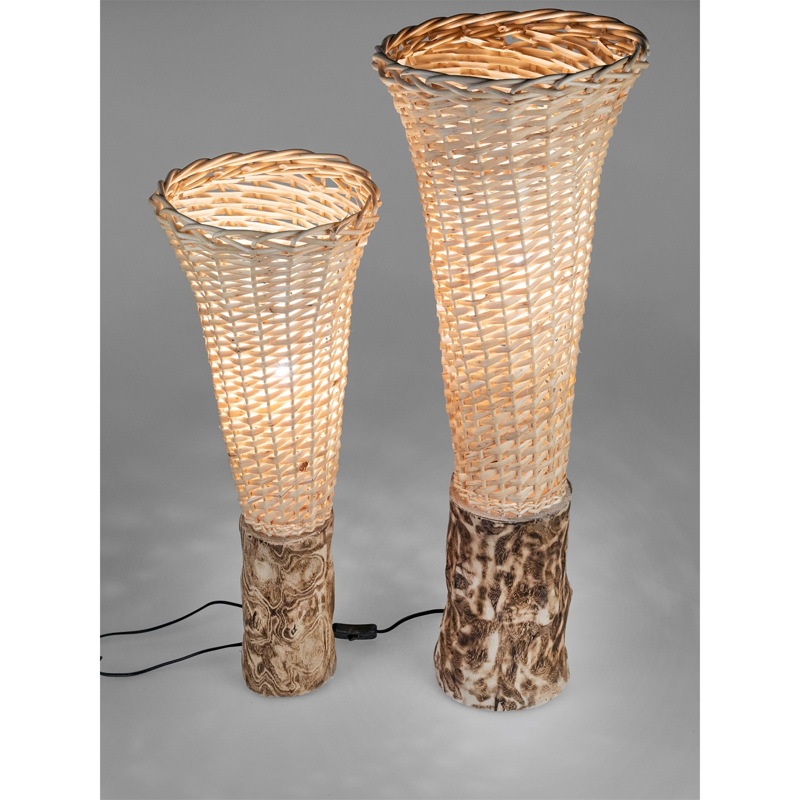 Diese natürlich gearbeitete Rattan-Lampe hat einen Holzsockel und einen langen, konisch geformten... mehr
