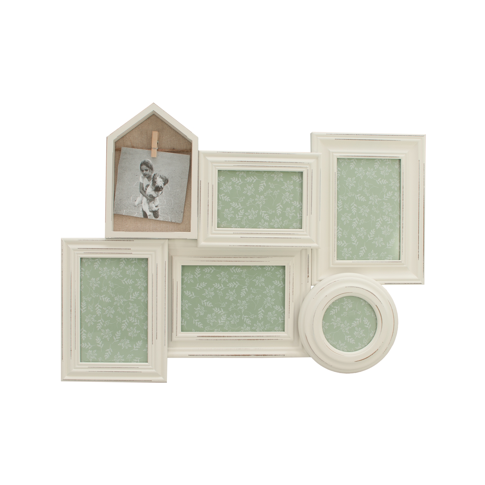 Dekorativer Bilderrahmen im angesagten Shabby Look. Dank einer Collage können Sie gleich 6 Bilder Ihrer Wahl optimal in Szene setzen. Ein echter Blickfang für ihre Wand! Abnutzungs-und Gebrauchsspuren sind an diesem Artikel gewollt und gehören zum Stil des Vintagelook.