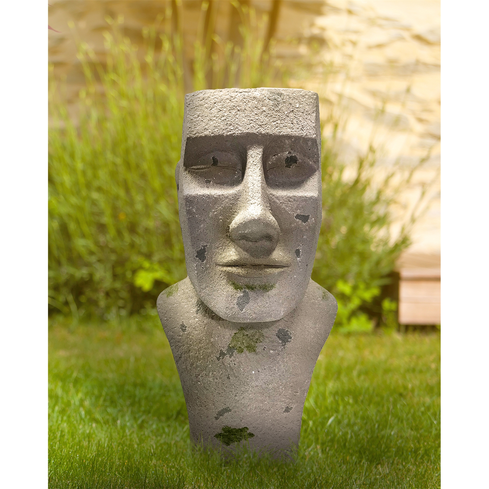 Dieser Moai-Kopf ist dekorative Gartenfigur und praktischer Pflanztopf in einem. Er erinnert an die bekannten Steinstatuen der Osterinseln und verleihen dem Garten einen mystischen Hauch.