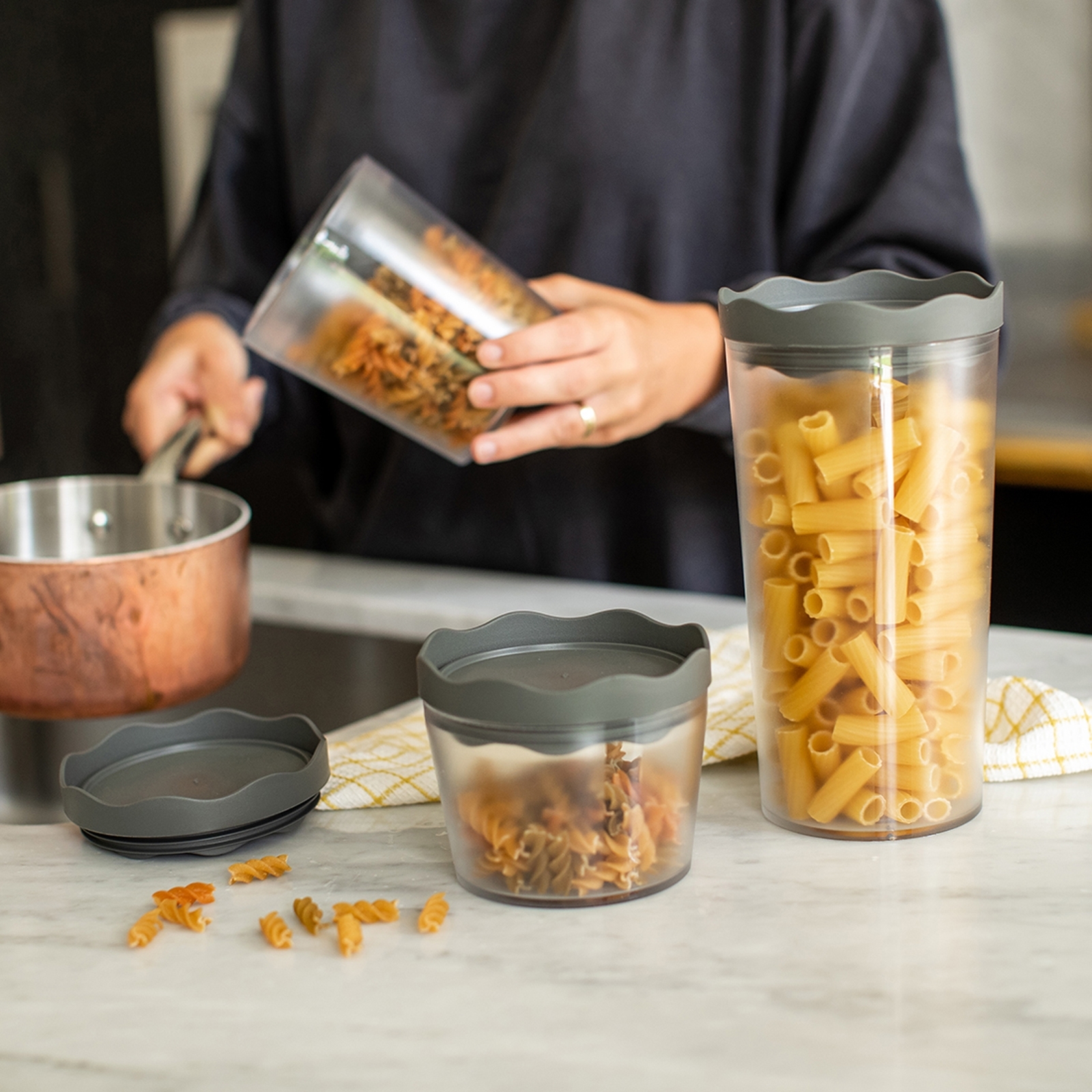 Von klein bis groß, von Mehl, Müsli, Zucker, Tee und Kaffee bis zum passenden Keks, PRINCE hat für alles Platz, was luftdicht aufbewahrt werden soll. Der Deckel mit Lamellen schließt so gut ab, dass sogar Flüssigkeiten problemlos darin gelagert werden können und macht PRINCE zum idealen Begleiter für den Einkauf von unverpackten Lebensmitteln. Die Dosen kommen in klarem Material mit Sichtfenster. So sieht man gleich, was drinnen ist und muss nicht lange suchen. Die farbigen Deckel helfen zusätzlich bei der Unterscheidung. PRINCE ist in drei Größen erhältlich, alle Dosen sind stapelbar und miteinander kombinierbar. Maße Ø 11 x 21,4 cm, Füllmenge 1 Liter