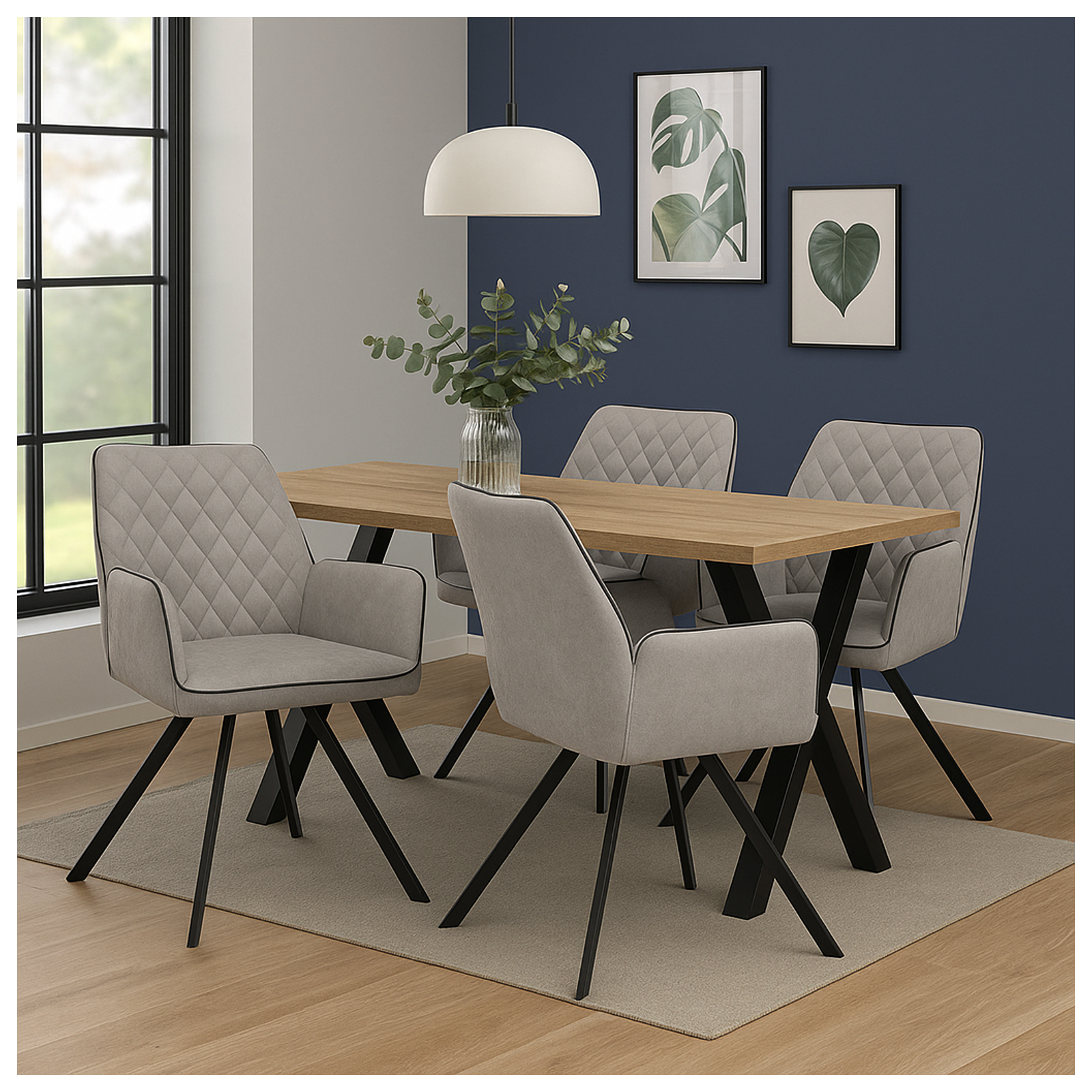 Dank der komfortablen Polsterung, den hohen Armlehnen und der großzügigen Sitzschale genießen Sie ein angenehmes Sitzgefühl – ob beim Essen, Arbeiten oder Entspannen. Die stabilen, schräg gestellten Metallbeine garantieren dabei festen Stand und moderne Leichtigkeit.