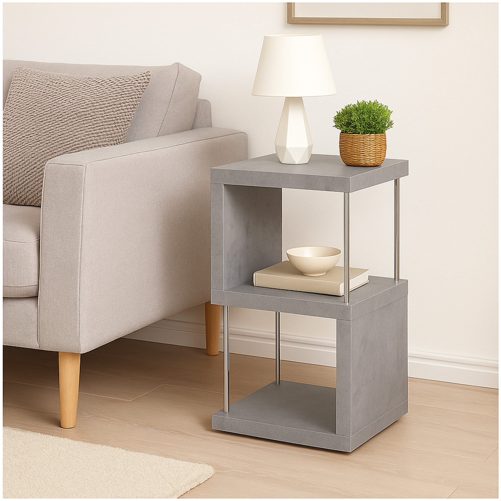 Dieses moderne Regal im attraktiven Grau Dekor überzeugt durch sein minimalistisches Design und vielseitige Einsatzmöglichkeiten. Mit den kompakten Maßen von 30 x 65 x 30 cm passt es perfekt in Wohnzimmer, Schlafzimmer, Büro oder Flur. Die offene Form bietet Platz für Bücher, Dekoartikel oder Alltagsgegenstände und sorgt für einen modernen Akzent in jedem Raum.