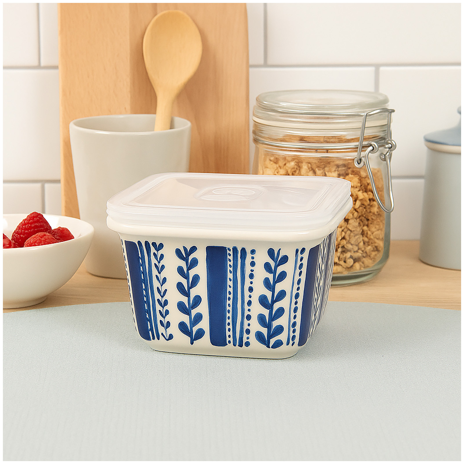 Die viereckige Schüssel von neuetischkultur besticht durch ihr charmantes Landhausdesign und ihre hochwertige Keramikverarbeitung. Mit einem Durchmesser von 14,5 cm und einem Fassungsvermögen von 0,8 Litern eignet sich die Salatschüssel perfekt für den täglichen Gebrauch in der Küche. Der Kunststoffdeckel ermöglicht zudem eine praktische Aufbewahrung im Kühlschrank und ist durch das Ventil Mikrowellengeeignet. Ideal für Leute, die Wert auf stilvolles Geschirr legen und gerne in gemütlichem Ambiente speisen.
