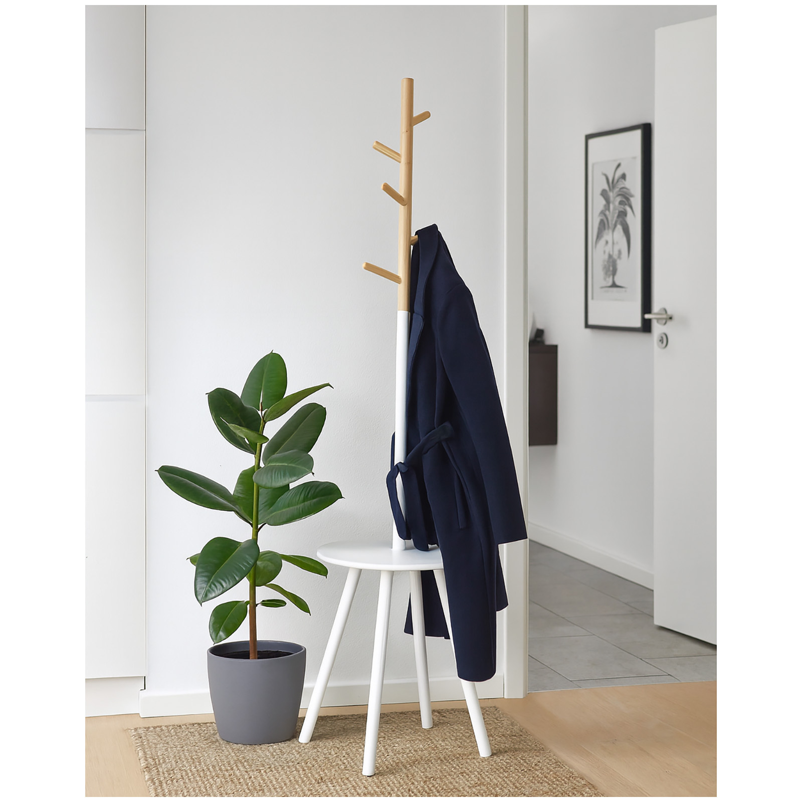 Der Kleiderständer Jana von HTI-Living ist ein moderner Garderobenhalter aus Bambus und MDF in den Farben Weiß und Natur. Mit Maßen von 40 x 169 x 40 cm (B/H/T) bietet er genügend Platz für Jacken, Mäntel und Accessoires. Der freistehende Garderobenständer ist einfach zu montieren und wird ohne Dekoration geliefert. Dieses stilvolle Möbelstück passt perfekt in Flur, Diele oder Kinderzimmer.
