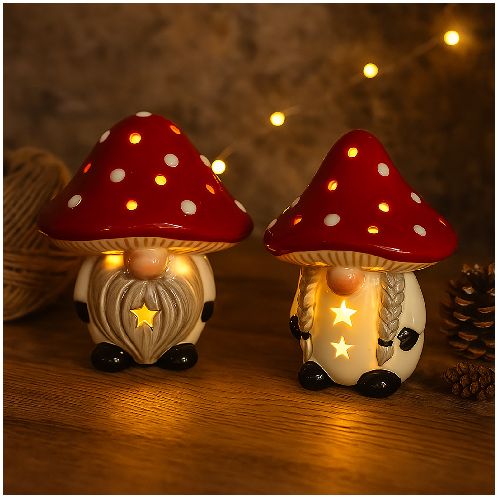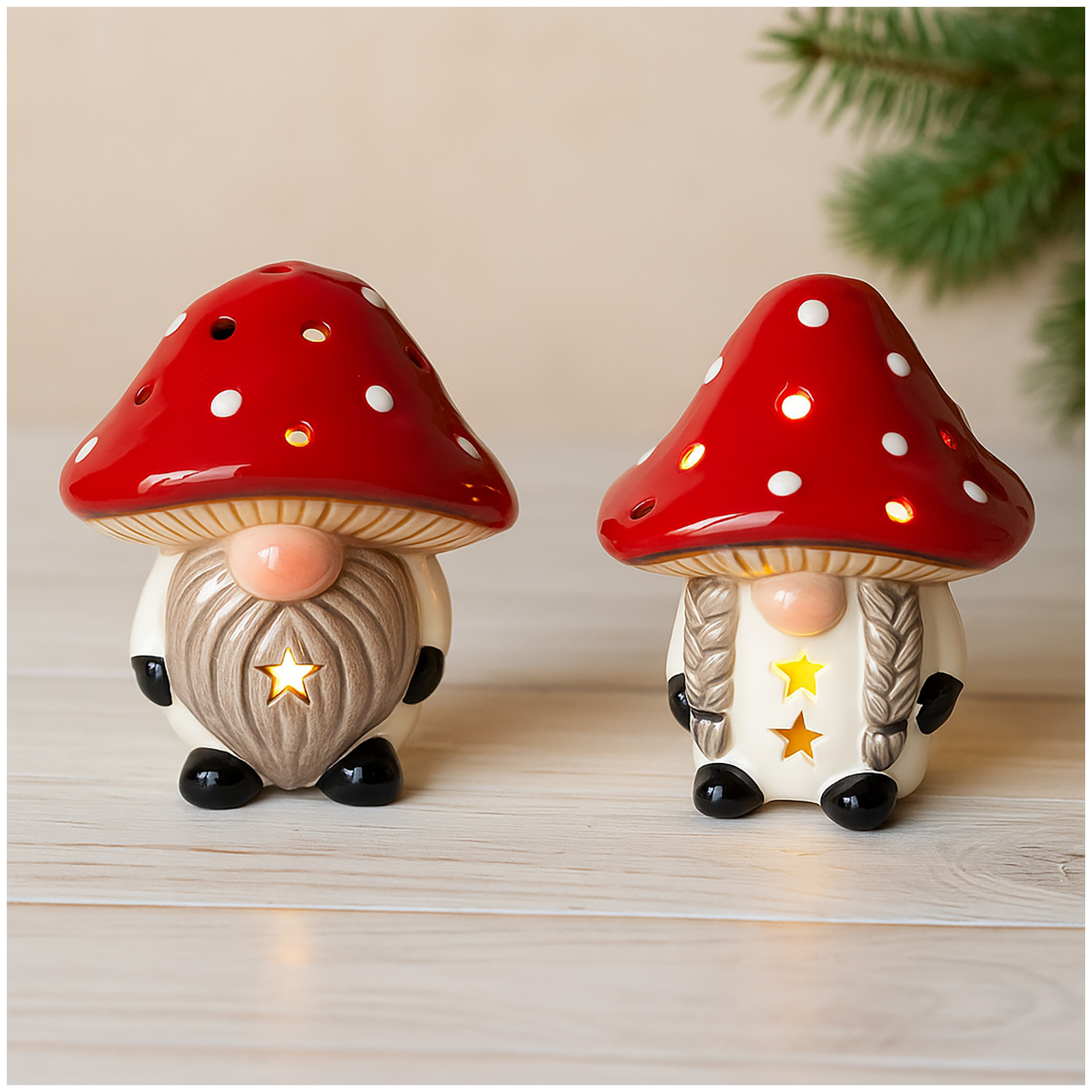 HTI-Living Wichtel LED Fliegenpilzpärchen Set