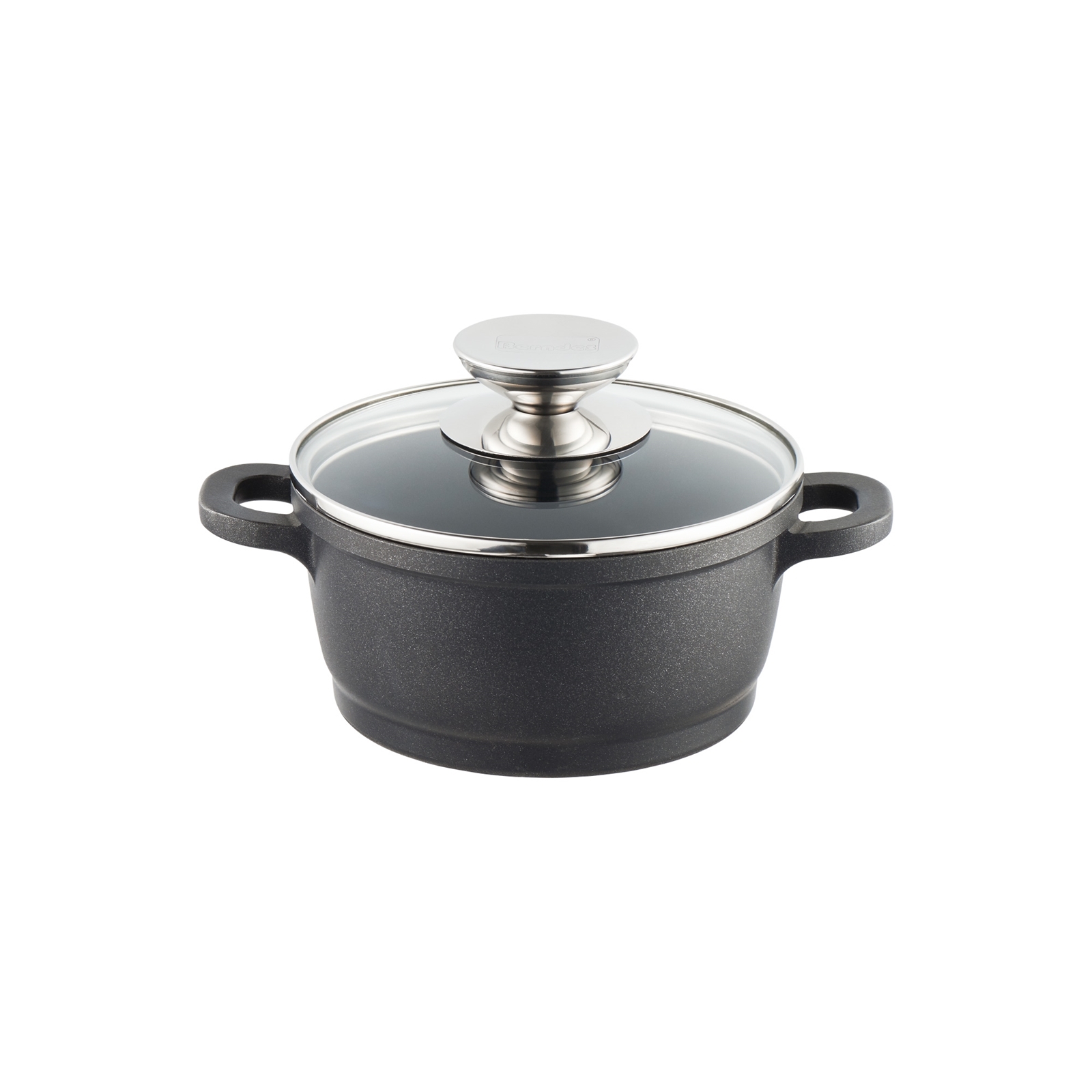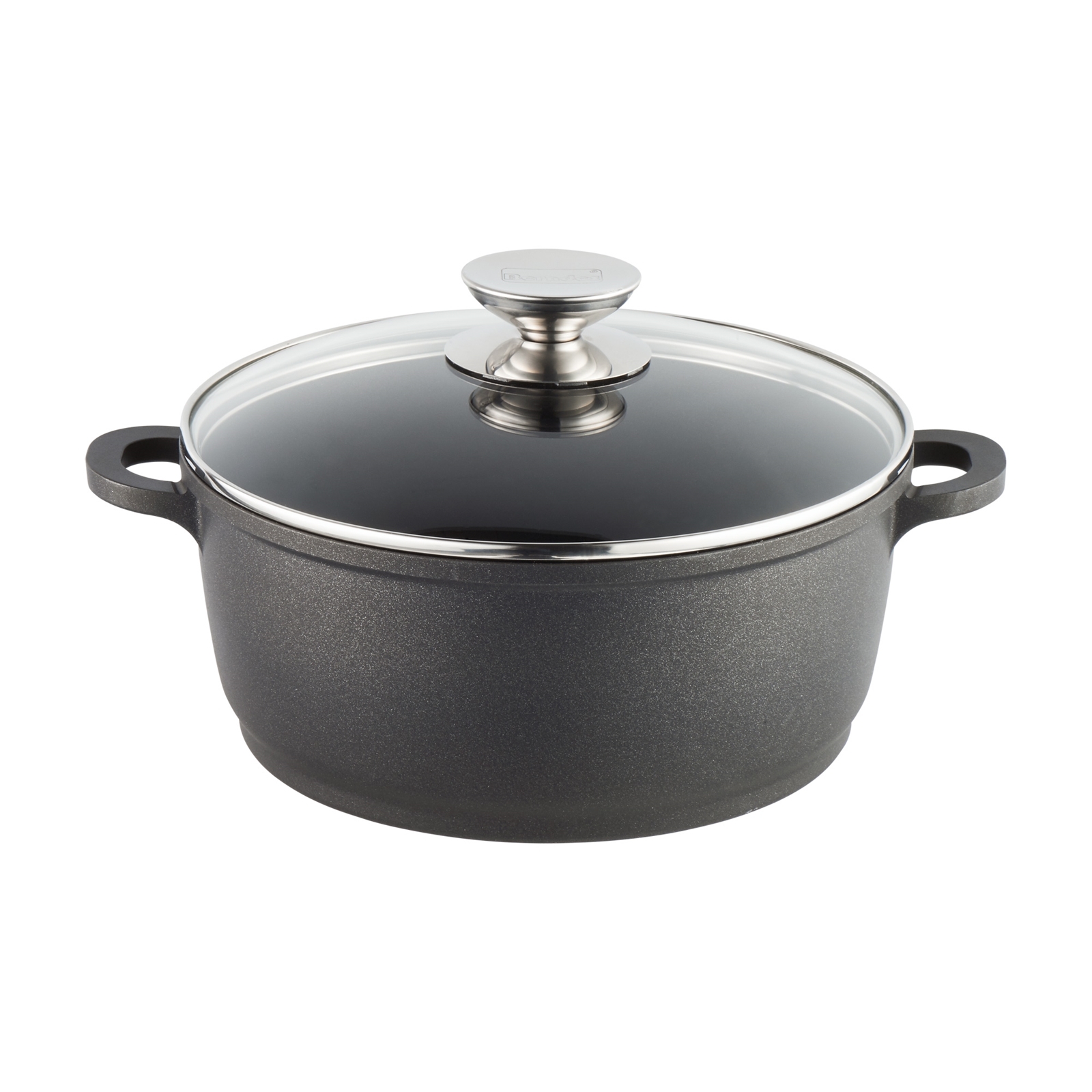 Die Spitzenklasse in anthrazit: Hochwertigster Aluminiumdruckguss mit in einem patentierten Verfahren in Schallgeschwindigkeit aufgespritzten Edelstahlboden für eine überlegene Induktionstechnologie und ideale Wärmeverteilung. Innen verfügt sie über eine professionelle, verstärkte 3lagige Antihaftbeschichtung, die rein gar nichts anbrennen lässt!
