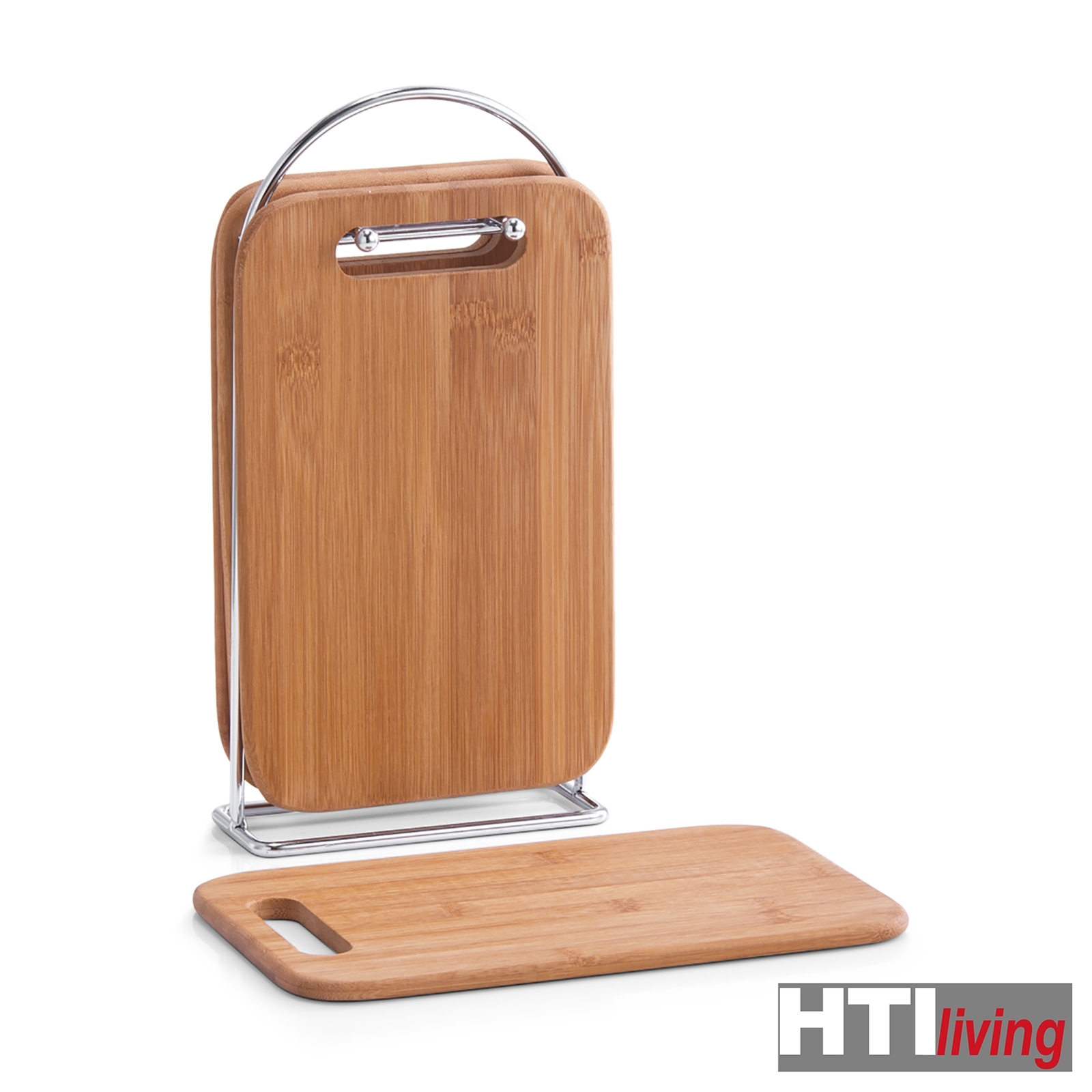 Das Brettchen-Ständer-Set gibt es in drei verschiedenen Ausführungen. Alle Sets sind robust und aus umweltfreundlichen Bambus gefertigt. Das Set mit Metallgriff ist 5-teilig, die beiden anderen Sets je 7-teilig. Die Brettchen selber zeichnen sich durch eine schnittfeste und messerschonende Oberfläche aus.