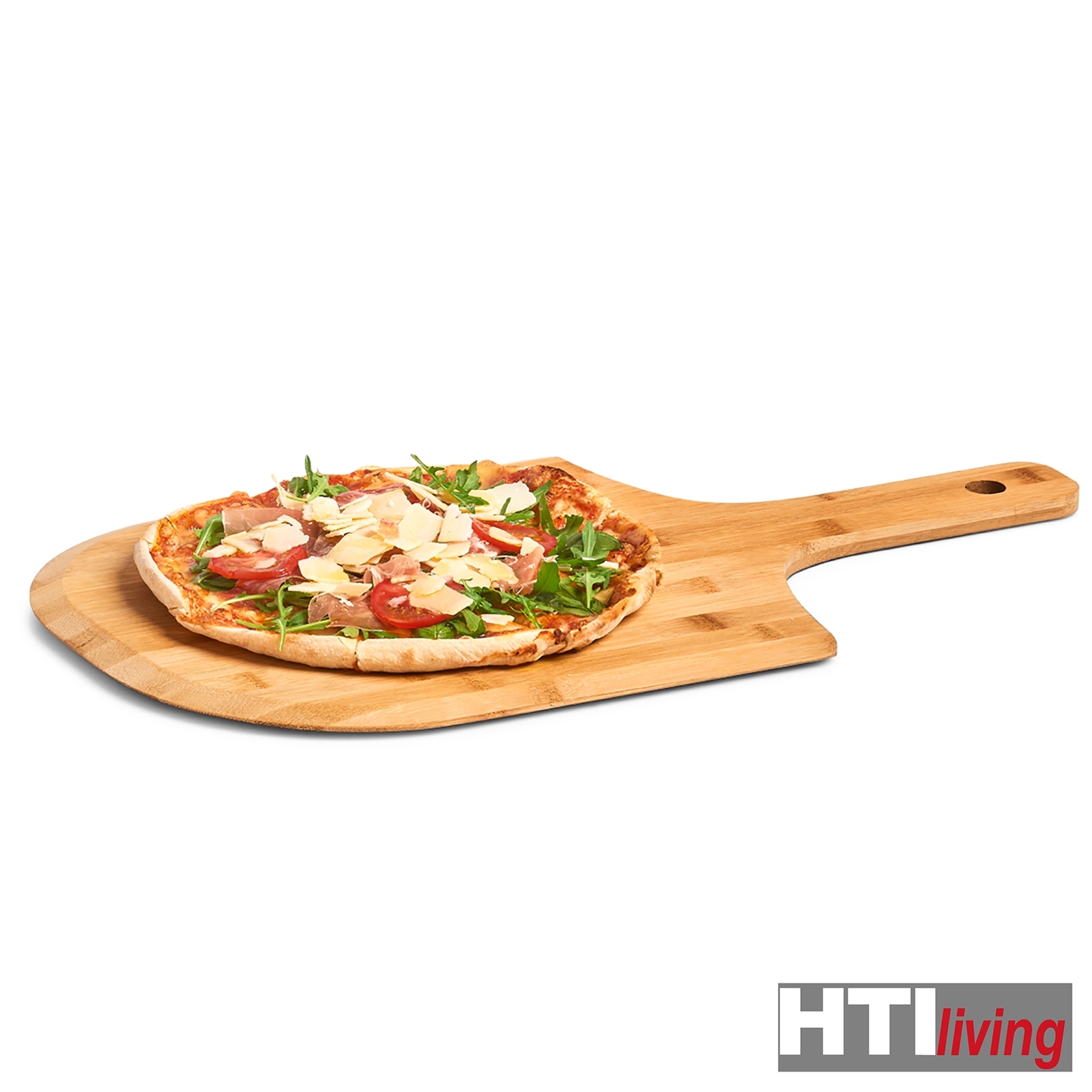 Dieser klassische Pizzateller aus hochwertigem Bambus besticht durch seine auf verschiedene Pizzen abgestimmte Form, die das Servieren um ein Vielfaches vereinfacht. Der lange Griff erleichtert dabei den Transport. Der Pizzateller besteht aus haltbarem und ökologischem Material und kann einfach mit einem Tuch und warmem Wasser gereinigt werden. Auch deine Gäste werden dieses Servierwerkzeug lieben. Maße 53,5 x 30,5 x 1,2 cm